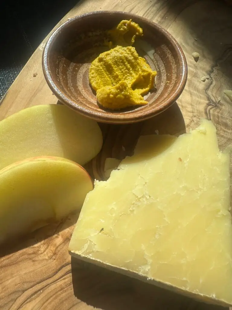 Pitchfork has a mustardy spice that pricks the tongue and lingers, grounded by a golden sweetness like dried hay. If Gorwydd Caerphilly is bright and lemony, Pitchfork is its autumn counterpart. It’s rich, warm, and full of depth. I love eating it with a strong English mustard and, you guessed it, apples! Let me know if you need help finding it!