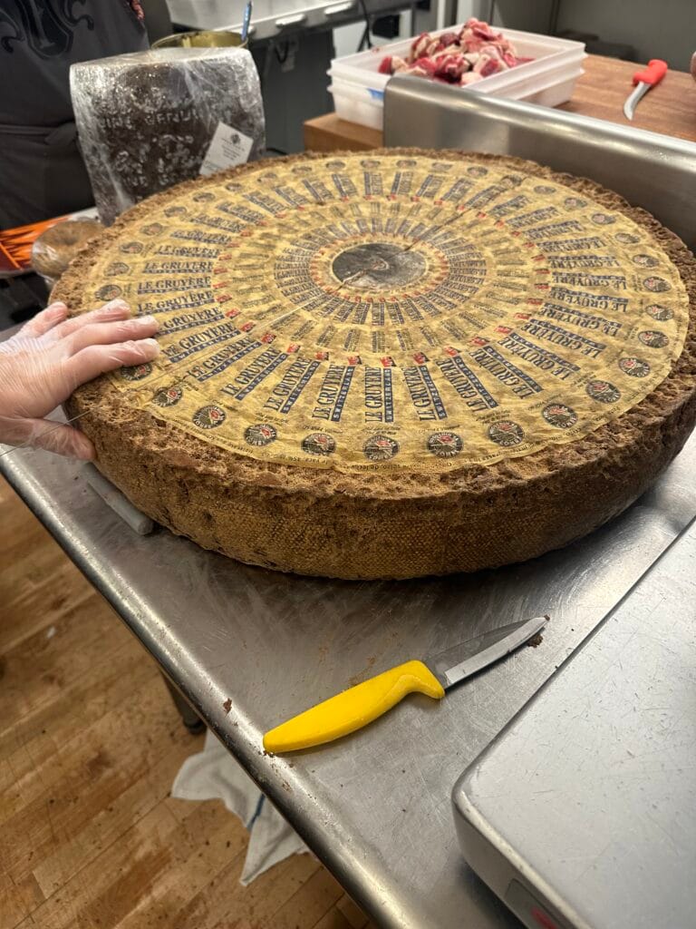 People often ask about those crunchy white specks found in aged Alpines. Those are tyrosine crystals, which form as proteins break down during the aging process. You will usually start seeing that satisfying crunch in a Comté around the 12 to 18-month mark. Gruyère is denser and much more close-textured, so you won’t find nearly as many crystals even in the older wheels.